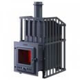 Печь для бани серии Гроза Ураган - расширенный комплект печи в сетке. Максимально приближенный вариант печи для режимов русской парной, имеющий непосредственно закрытую чугунным коробом каменку, дверцу для пара с ручкой из бука, увеличенную до 50см чугунную стартовую трубу.  Печь легко модернизируется до полноценной печи предназначенной для Русской бани путем замены стальной сетки на каменную облицовку без демонтажа дымохода. Модель Гроза Ураган выполнена на базе печей серии Гроза - экономичная модель для частного применения. Основной принцип работы печи сохранён – получение пара с теплоёмкой каменки прямого нагрева. Каменка является сводом топки, нагревается с нижней поверхности снабженной теплосъемными шипами для увеличения контакта с пламенем.Банная печь Гроза 18М Ураган с максимальным объемом парной 18 м3 и диаметром дымохода 115 мм можно купить в интернет-магазине Печи-Онлайн в Костроме с доставкой по всей России. Чтобы оформить заказ по выгодной цене 94300 руб. с гарантией оставьте заявку или позвоните нам по телефону 8 (800) 505-21-32 . Стоимость монтажа уточняйте у менеджера.