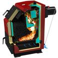 • Наклонная дверца для загрузки твердого топлива.