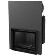 В подъемную дверцу вставлено стекло из жаропрочной стеклокерамики, через которое можно любоваться игрой живого пламени и следить за сгоранием дров.