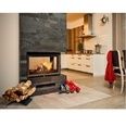 В распашную дверцу, а также в стенку справа вставлены стёкла из жаропрочной стеклокерамики, через которые можно любоваться игрой живого пламени и следить за сгоранием дров. Каминная топка предназначена для установки в колонну или внешний выступ перегородки.