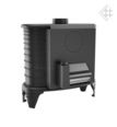 Печь изготовлена из серого чугуна с толщиной стенок 7мм. Чугун обладает высокой теплопроводностью, буржуйка начинает отдавать тепло в помещение сразу после затопки. Мощности печи 9 кВт достаточно для отопления загородного дома площадью до 90 м2. Печь имеет герметичную топку и работает в режиме длительного горения с КПД 75%. Встроенные тепловентилятор (турбина) позволяет быстро нагнетать теплый воздух в помещение, увеличивая тепловую эффективность печи.