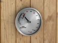 Термометр Dragonfire от компании Sawo имеет оригинальную круглую форму. В узкой рамке из нержавеющей стали находится большой, круглый, графичный циферблат красного цвета, который сообщит о температуре воздуха. Циферблат защищён жаропрочным стеклом. Данный прибор прекрасно подойдёт для использования в парной. Максимально допустимая для измерения температура составляет 120 градусов Цельсия. Этого максимума достаточно для комфортных банных процедур.